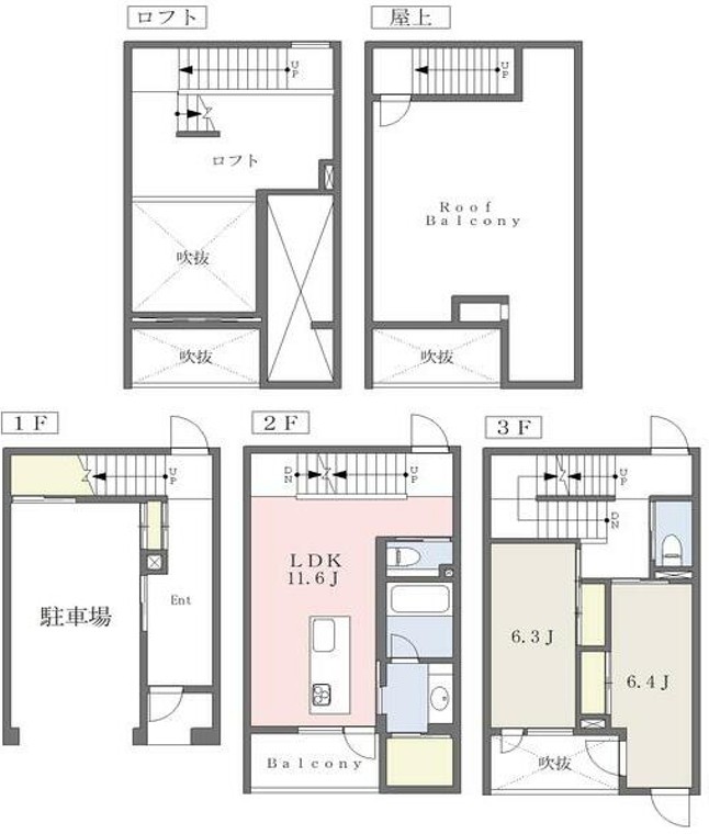 2LDK +ロフト +屋上ルーフバルコニー +シャッター付きガレージ +WIC +倉庫 +屋内自転車・バイク置き場